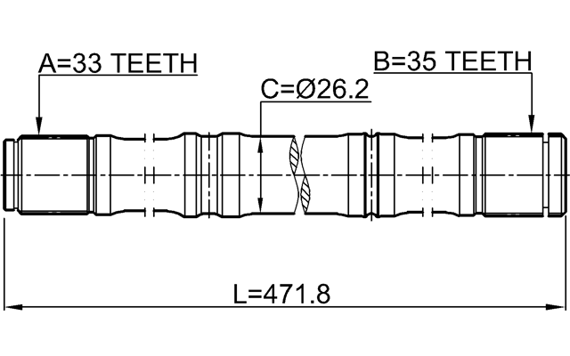 This - axle half shaft left 33x471.5x35 suits many models: