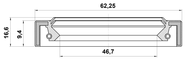 This - half shaft oil seal 46.7x62.25x9.4x16.6 suits many models: