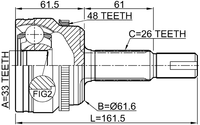 This - outer cv joint 33x61.6x26 suits many models: